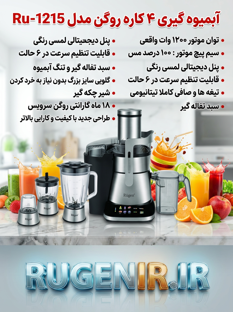 آبمیوه گیری ۴ کاره روگن مدل Ru-1215