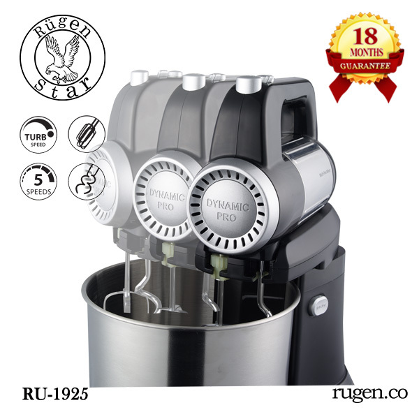 همزن کاسه دار روگن مدل Ru-1925 یک همزن کاسه دار، حرفهای و کارآمد این برند است که به تازگی وارد بازار شده است. این همزن با استفاده از گیربکس پیشرفته خود، علاوه بر چرخش تیغهها، کلگی موتور را نیز به دور کاسه بزرگ خود میچرخاند. این فناوری به انتقال توان بالای موتور به تیغهها کمک کرده و سرعت چرخش را به گونهای تنظیم میکند که در استفادههای سنگین، فشاری به موتور و دستگاه وارد نشود.